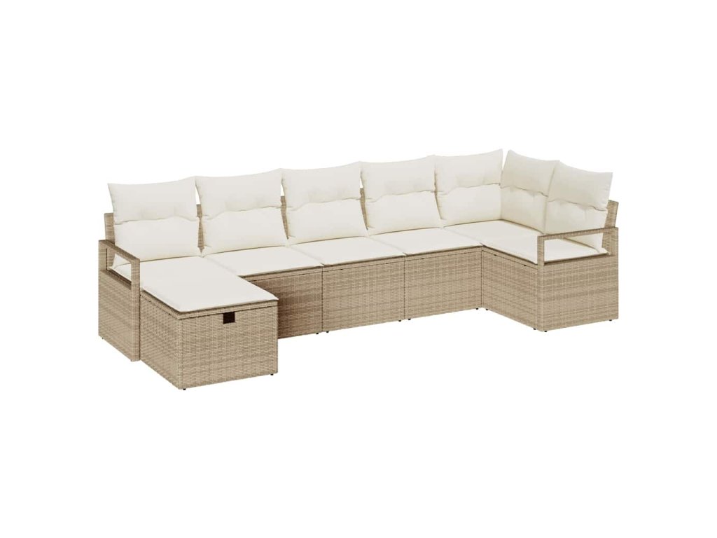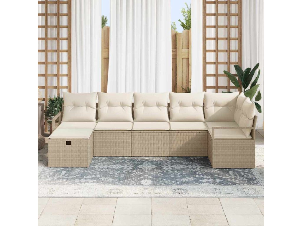 Sada zahradních pohovek s polštářem 7 pcs Béžová Poly ratan 3360532