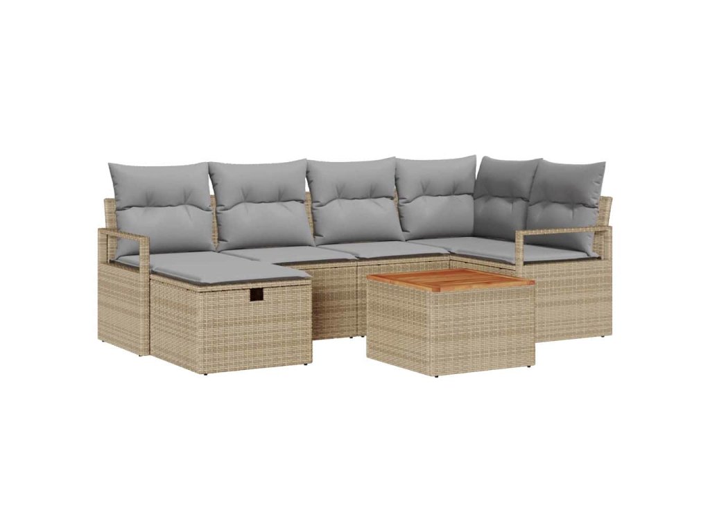 Sada zahradních pohovek s polštářem 7 pcs Béžová Poly ratan 3360871