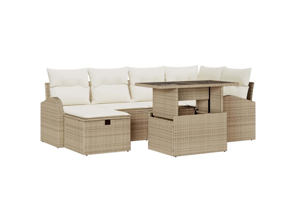 Sada zahradních pohovek s polštářem 7 pcs Béžová Poly ratan 3361090