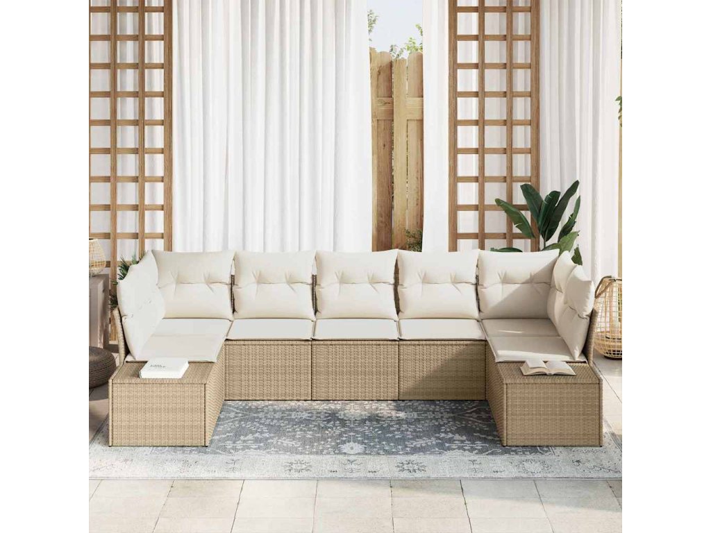 Sada zahradních pohovek s polštářem 7 pcs Béžová polyratan 3347211