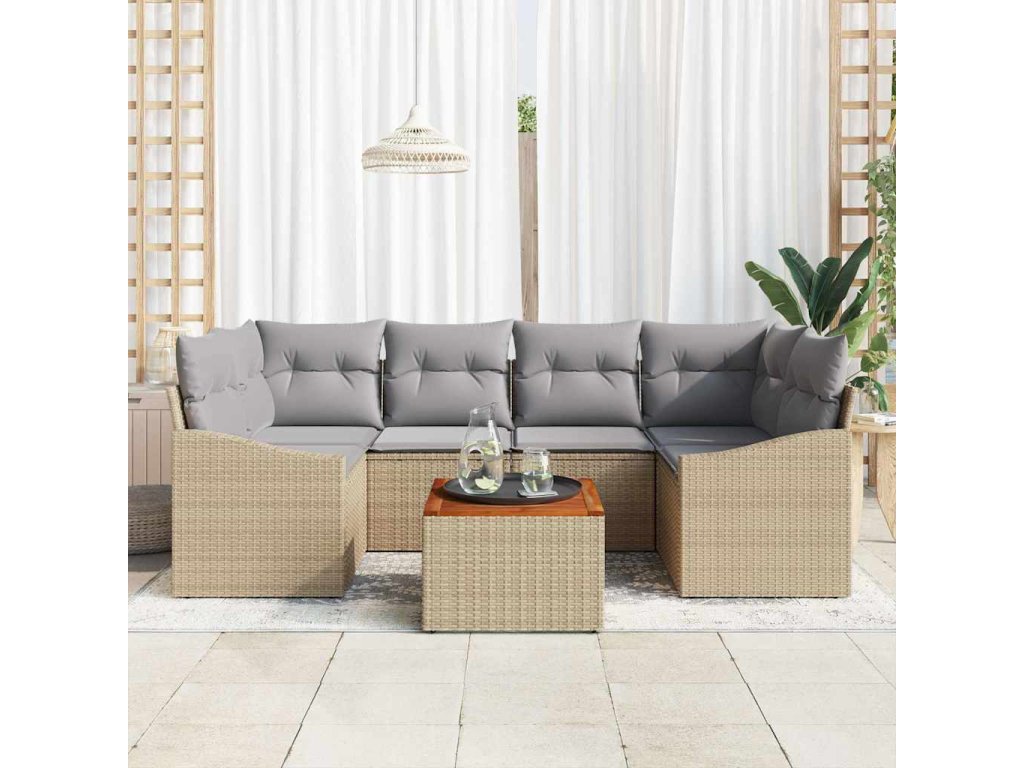 Sada zahradních pohovek s polštářem 7 pcs Béžová polyratan 3347784
