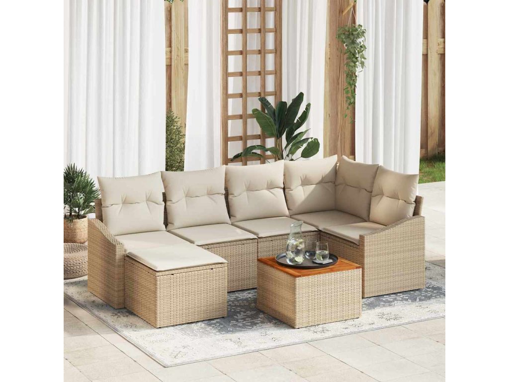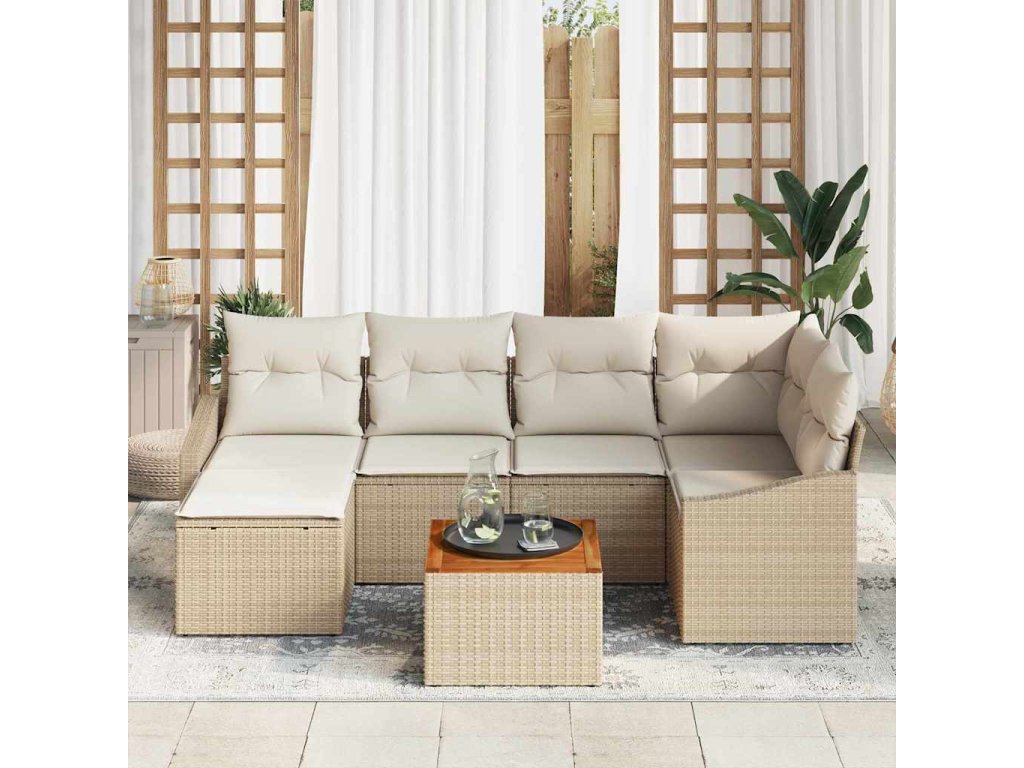 Sada zahradních pohovek s polštářem 7 pcs Béžová polyratan 3347855