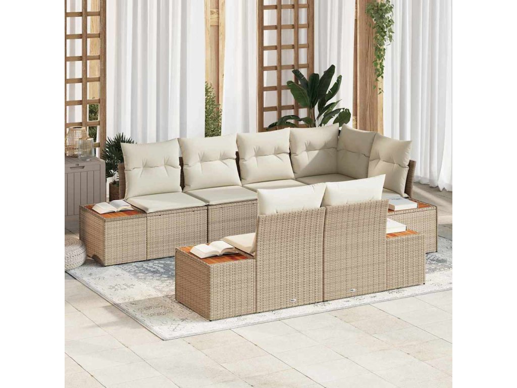 Sada zahradních pohovek s polštářem 7 pcs Béžová polyratan 3348107