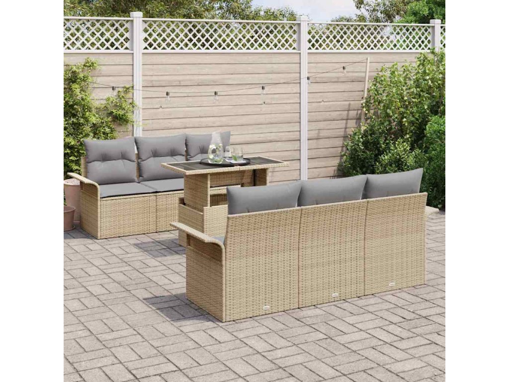 Sada zahradních pohovek s polštářem 7 pcs Béžová polyratan 3348206