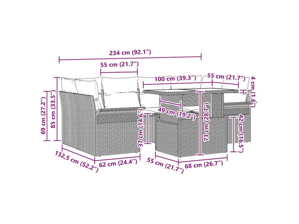 Sada zahradních pohovek s polštářem 7 pcs Béžová polyratan 3348217