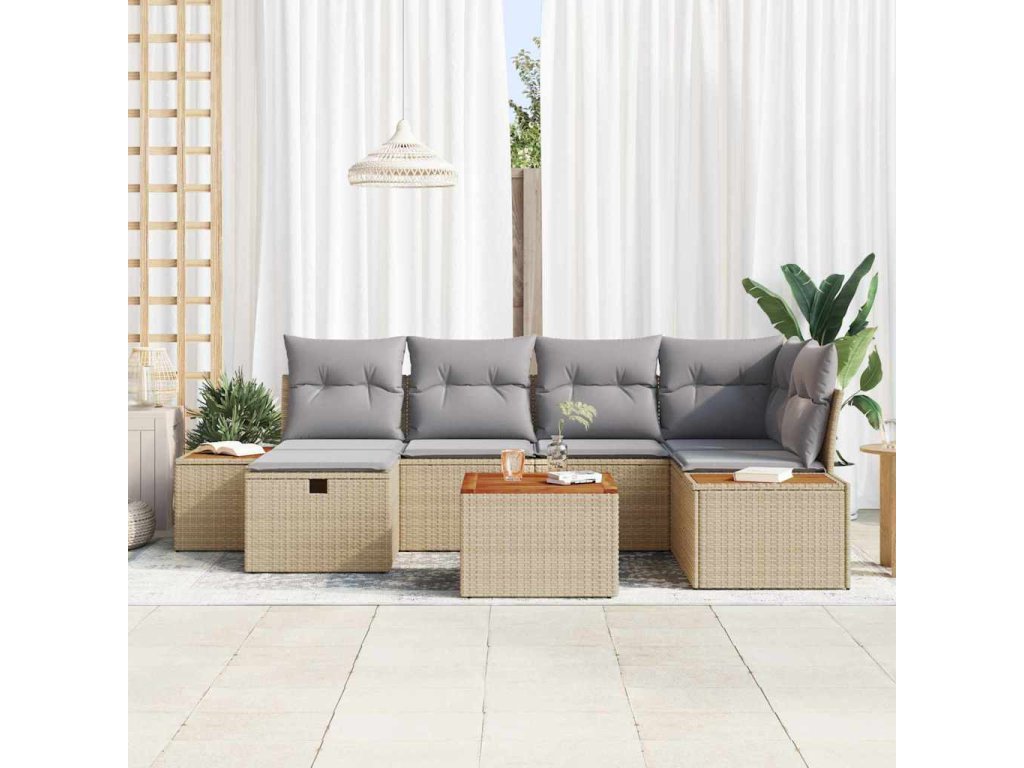 Sada zahradních pohovek s polštářem 7 pcs Béžová polyratan 3359637