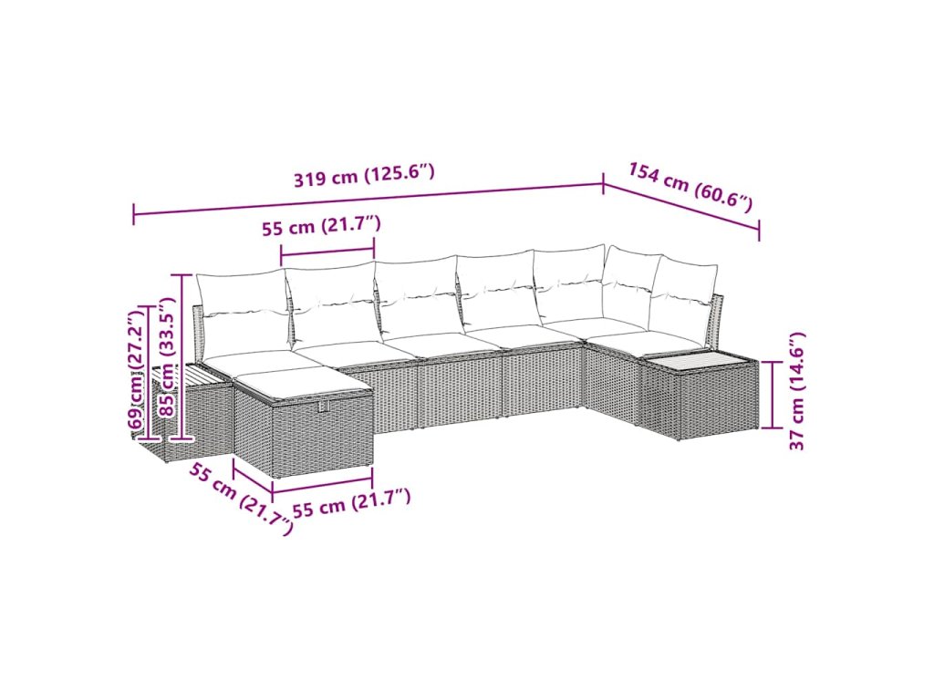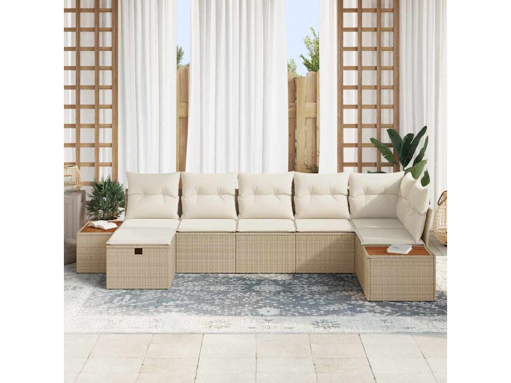 Sada zahradních pohovek s polštářem 7 pcs Béžová polyratan 3359643