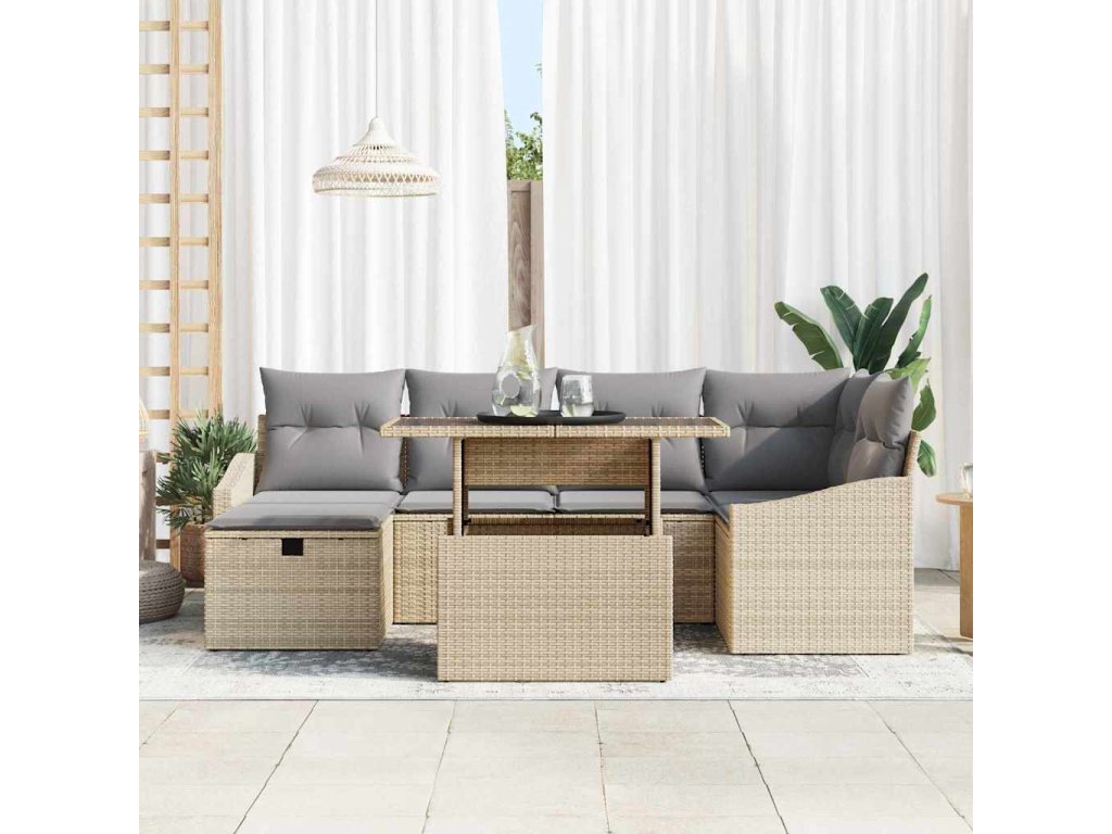 Sada zahradních pohovek s polštářem 7 pcs Béžová polyratan 3361169