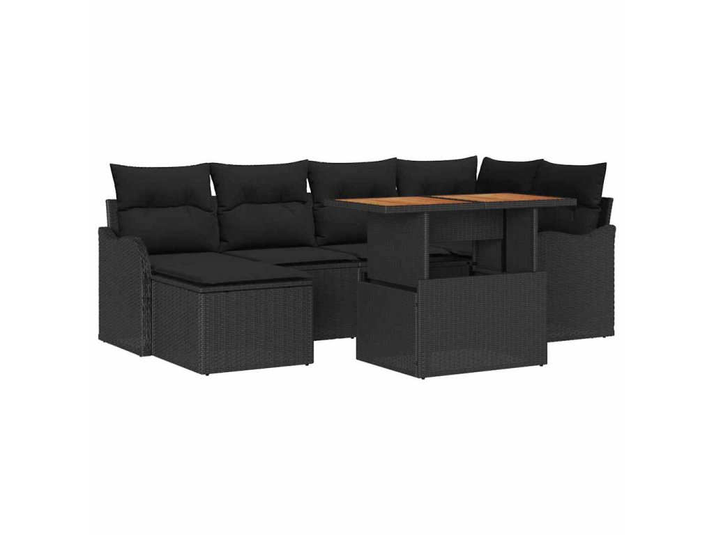 Sada zahradních pohovek s polštářem 7 pcs Černá 3349484