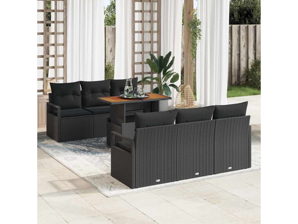 Sada zahradních pohovek s polštářem 7 pcs Černá 3349659