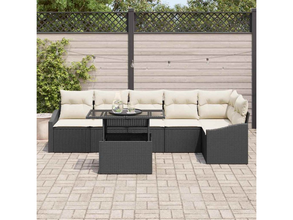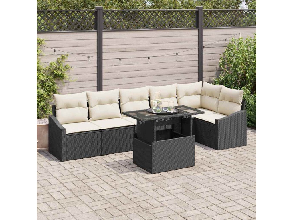 Sada zahradních pohovek s polštářem 7 pcs Černá a krémová 3349013