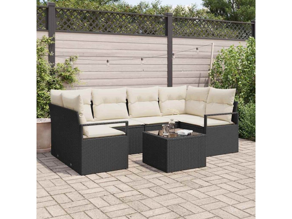 Sada zahradních pohovek s polštářem 7 pcs Černá a krémová 3354946