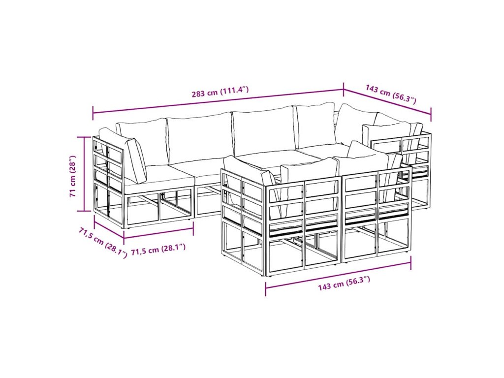 - 4 x Rohová sedačka: 71.5 x 71.5 x 71 cm (D x Š x V)