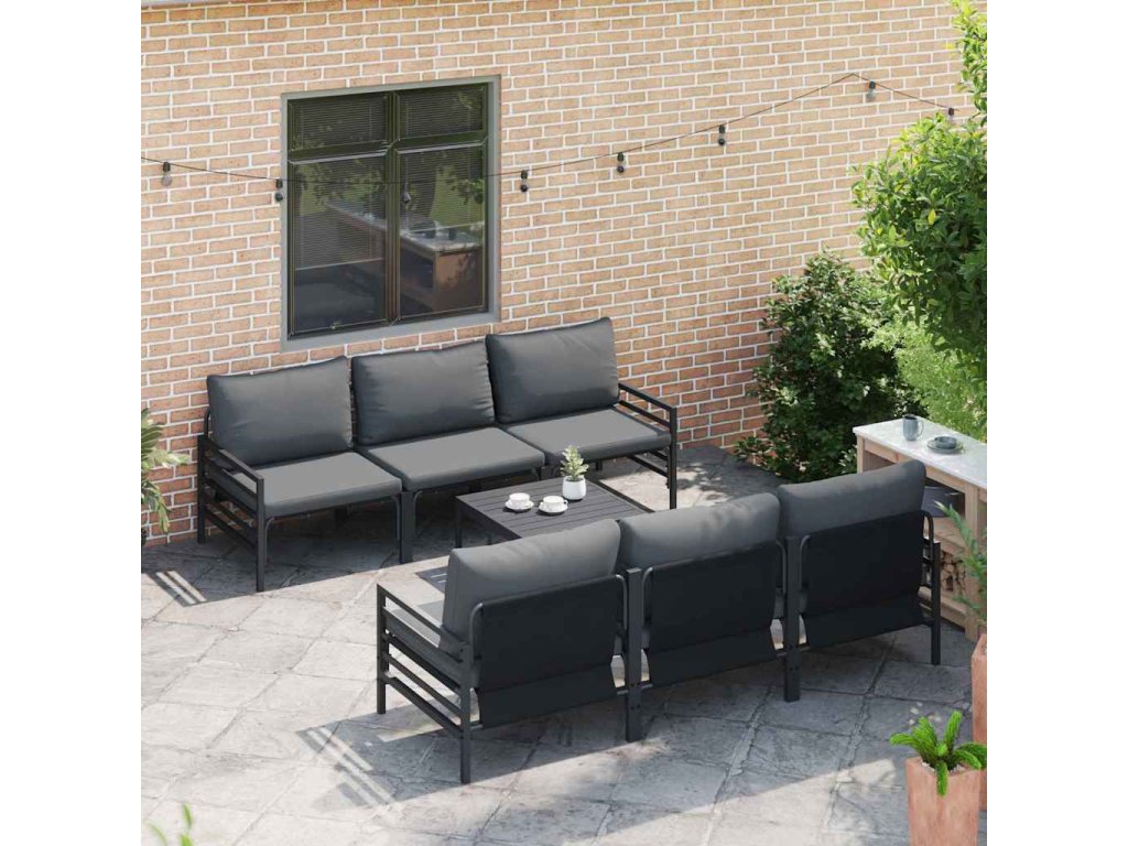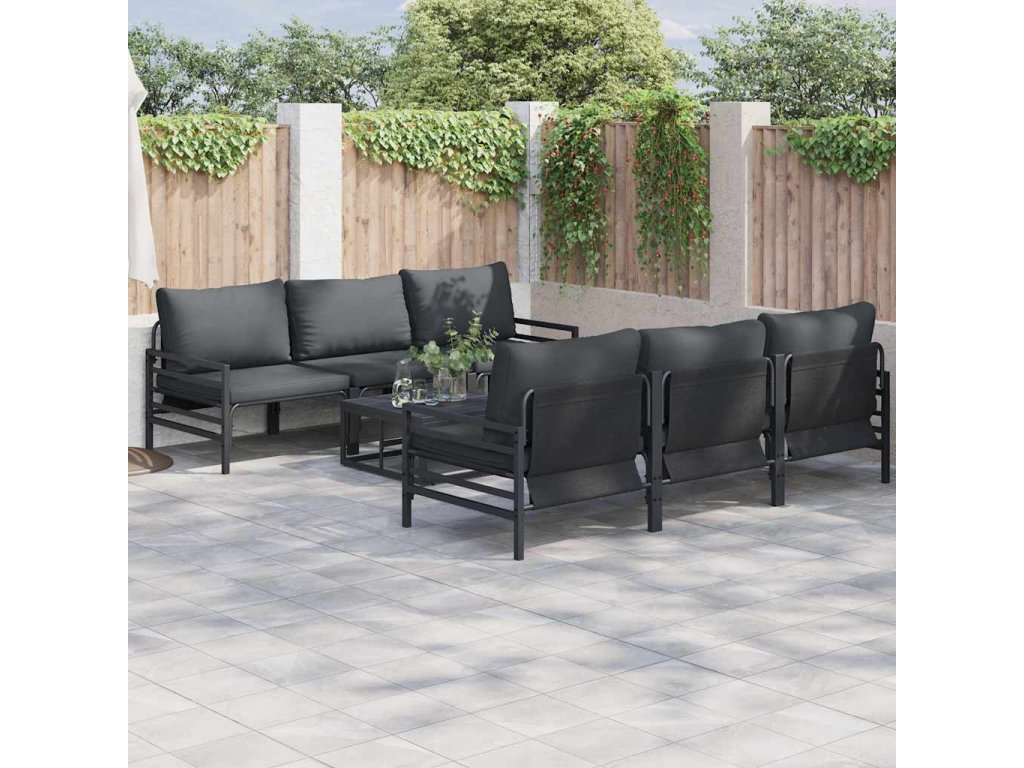 Sada zahradních pohovek s polštářem 7 pcs Černá Ocel 3378956