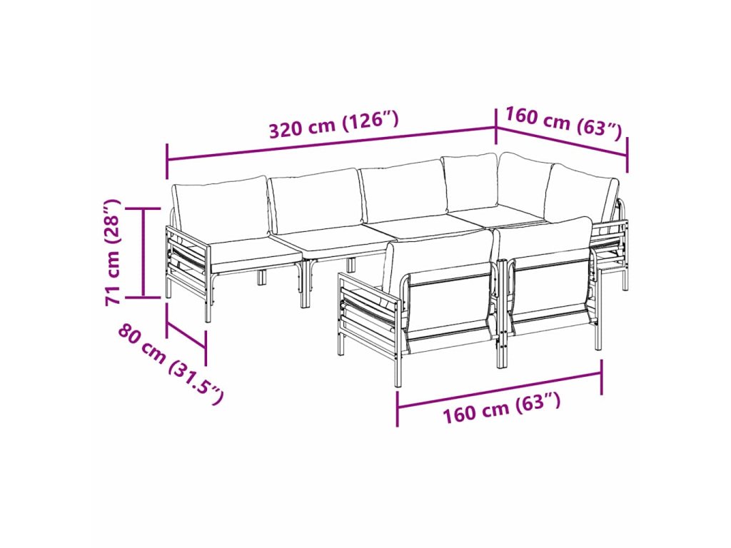 Tento moderní zahradní sofa set je skvělým doplňkem pro každý venkovní prostor, navržený pro ty, kteří hledají styl a praktičnost. Mít čisté linie a minimální zdobení, hezky doplňuje každou zahradu nebo terasu. Elegantní design vybízí k relaxaci a společenským chvílím, tvoří příjemnou atmosféru pro rodinu a přátele. Ať už děláš grilovačku v létě nebo si chceš užít klidný večer pod hvězdami, tento set ti nabídne luxusní, ale praktické sezení.