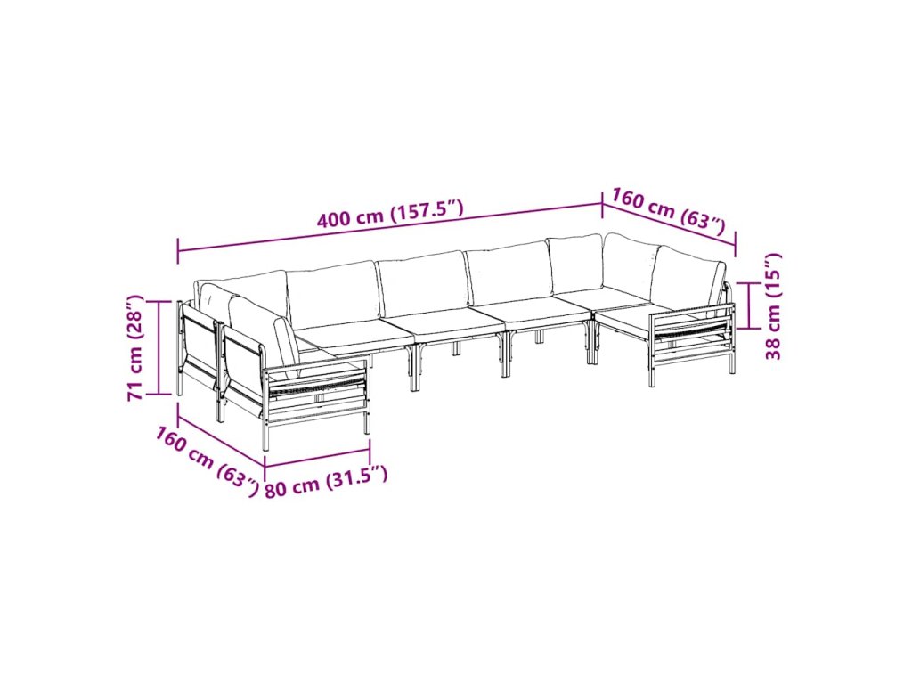 Sada zahradních pohovek s polštářem 7 pcs Černá Ocel 3378968