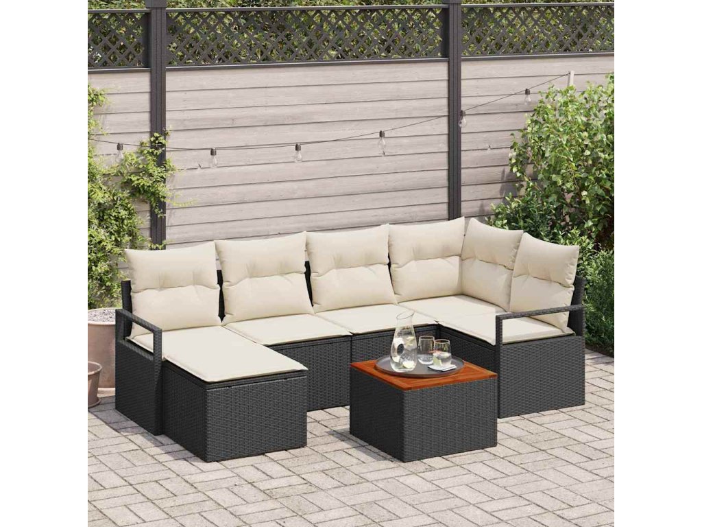 Sada zahradních pohovek s polštářem 7 pcs Černá Poly ratan 3347726