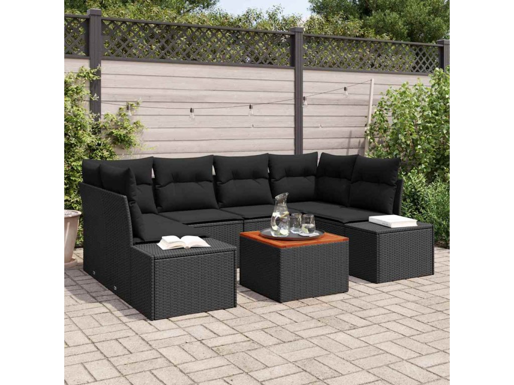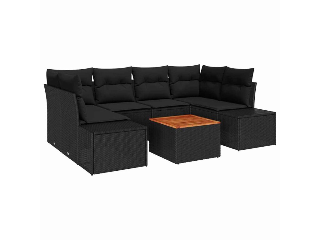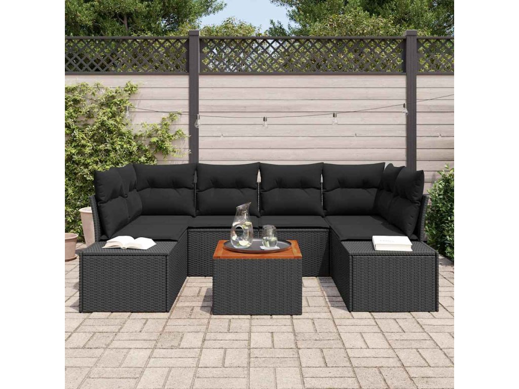 Sada zahradních pohovek s polštářem 7 pcs Černá Poly ratan 3347912