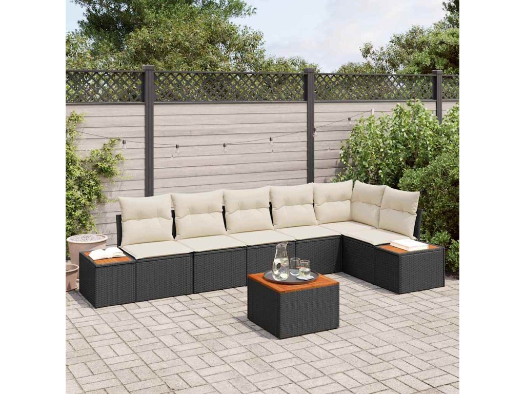Sada zahradních pohovek s polštářem 7 pcs Černá Poly ratan 3348098
