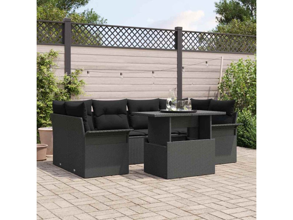 Sada zahradních pohovek s polštářem 7 pcs Černá Poly ratan 3348219