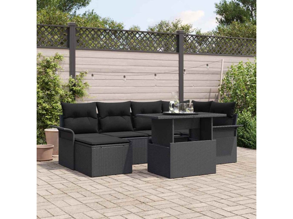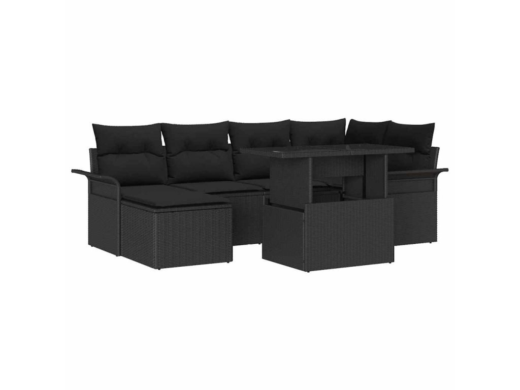 Sada zahradních pohovek s polštářem 7 pcs Černá Poly ratan 3348319