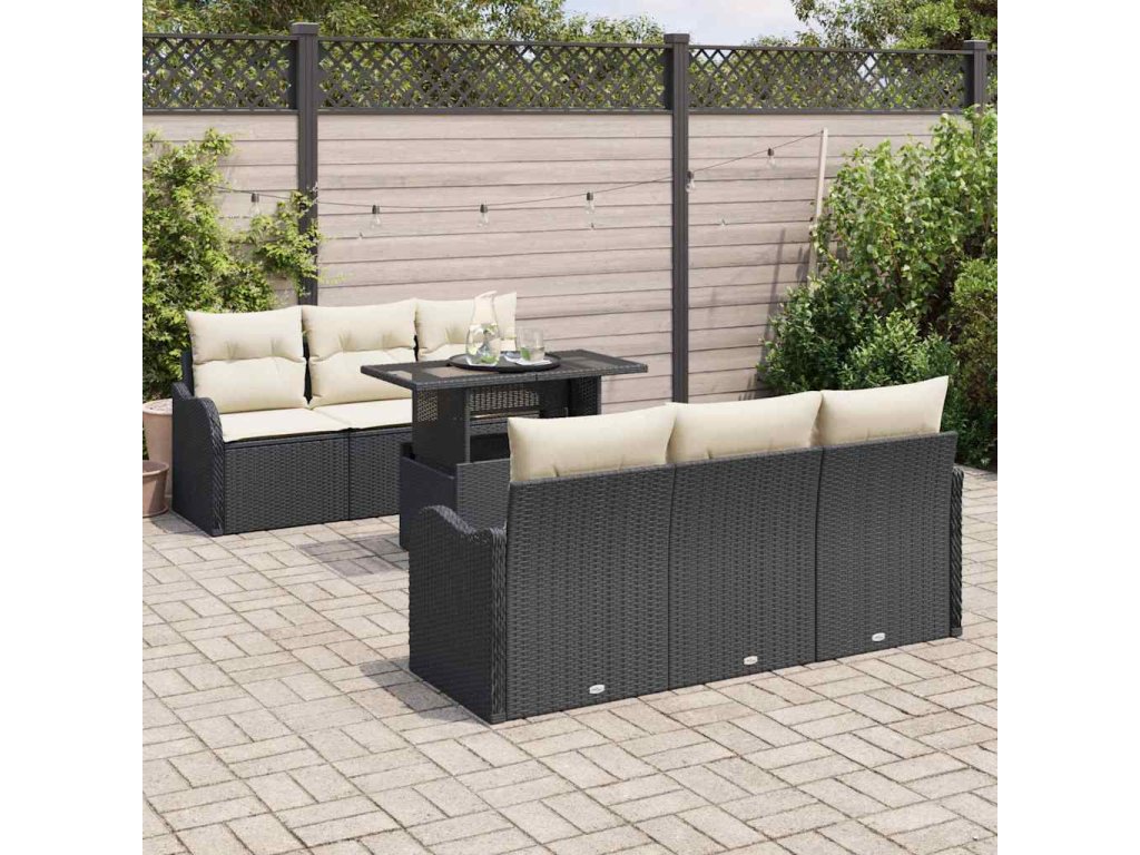 Sada zahradních pohovek s polštářem 7 pcs Černá Poly ratan 3348383