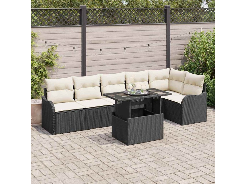 Sada zahradních pohovek s polštářem 7 pcs Černá Poly ratan 3348473