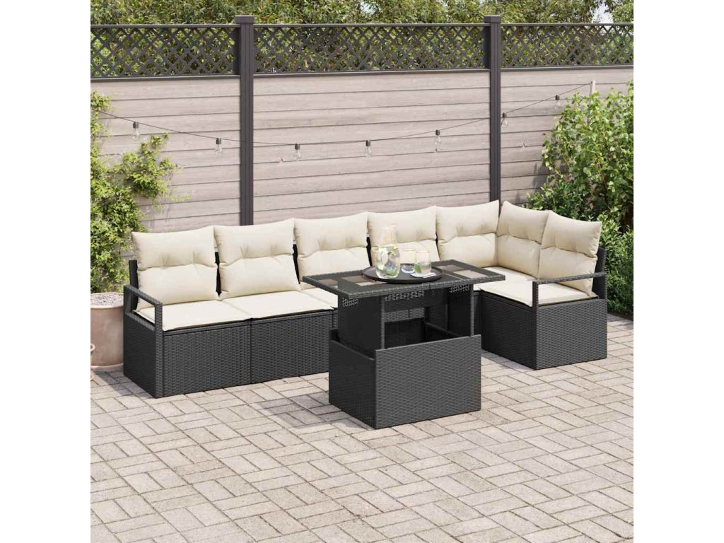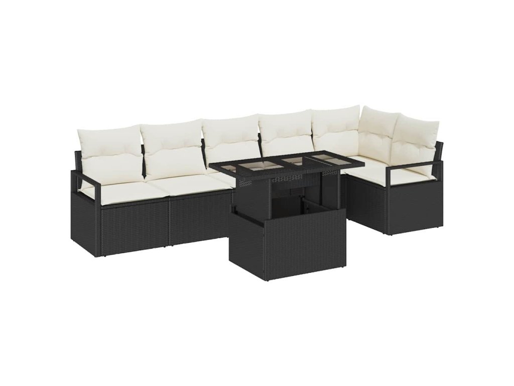 Sada zahradních pohovek s polštářem 7 pcs Černá Poly ratan 3348833