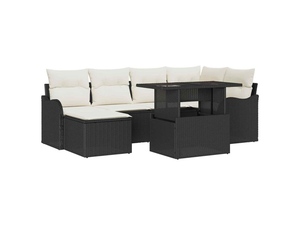 Sada zahradních pohovek s polštářem 7 pcs Černá Poly ratan 3357230