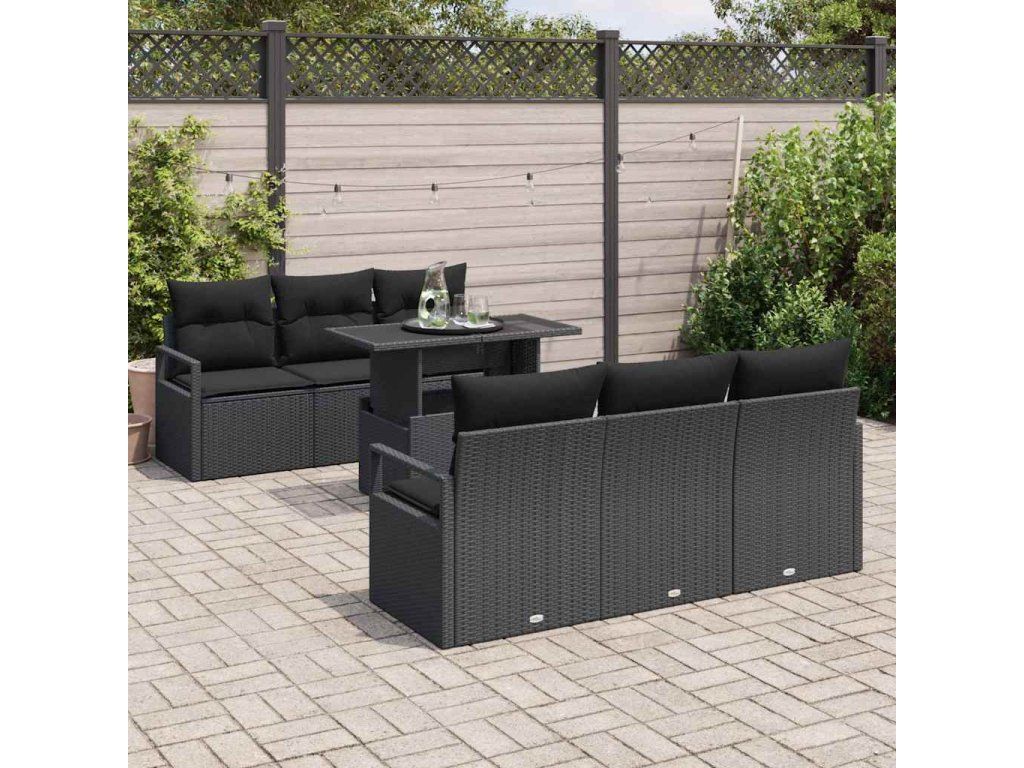 Sada zahradních pohovek s polštářem 7 pcs Černá Poly ratan 3357486