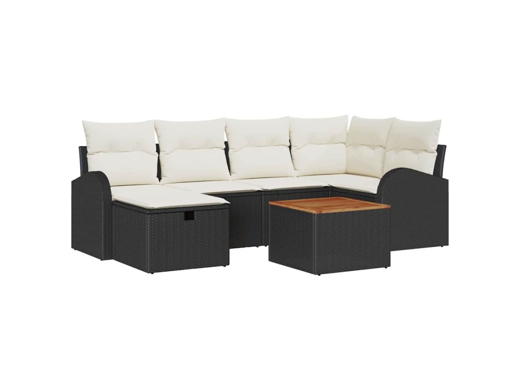 Sada zahradních pohovek s polštářem 7 pcs Černá Poly ratan 3359509