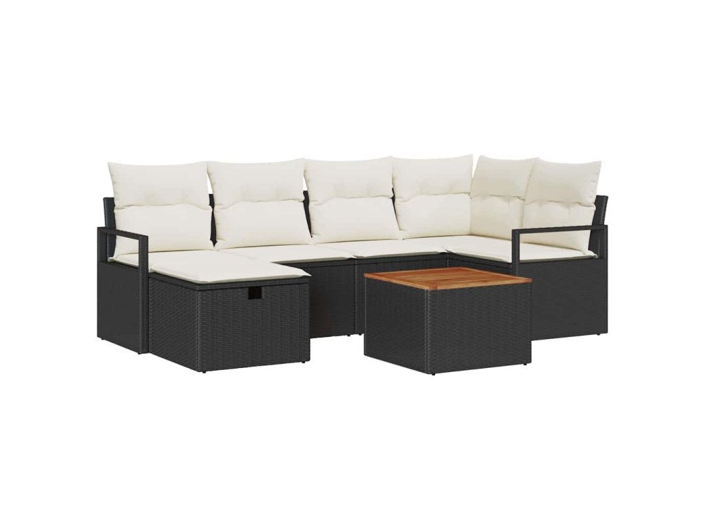 Sada zahradních pohovek s polštářem 7 pcs Černá Poly ratan 3359537