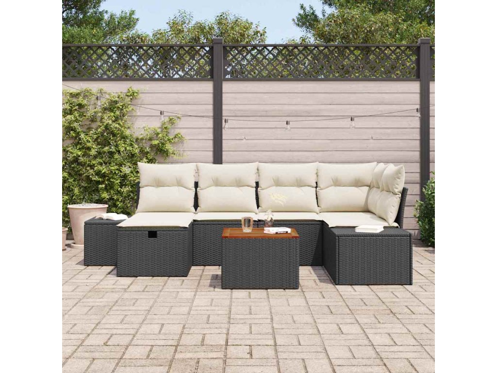 Sada zahradních pohovek s polštářem 7 pcs Černá Poly ratan 3359593