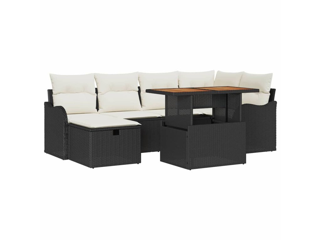 Sada zahradních pohovek s polštářem 7 pcs Černá Poly ratan 3359939