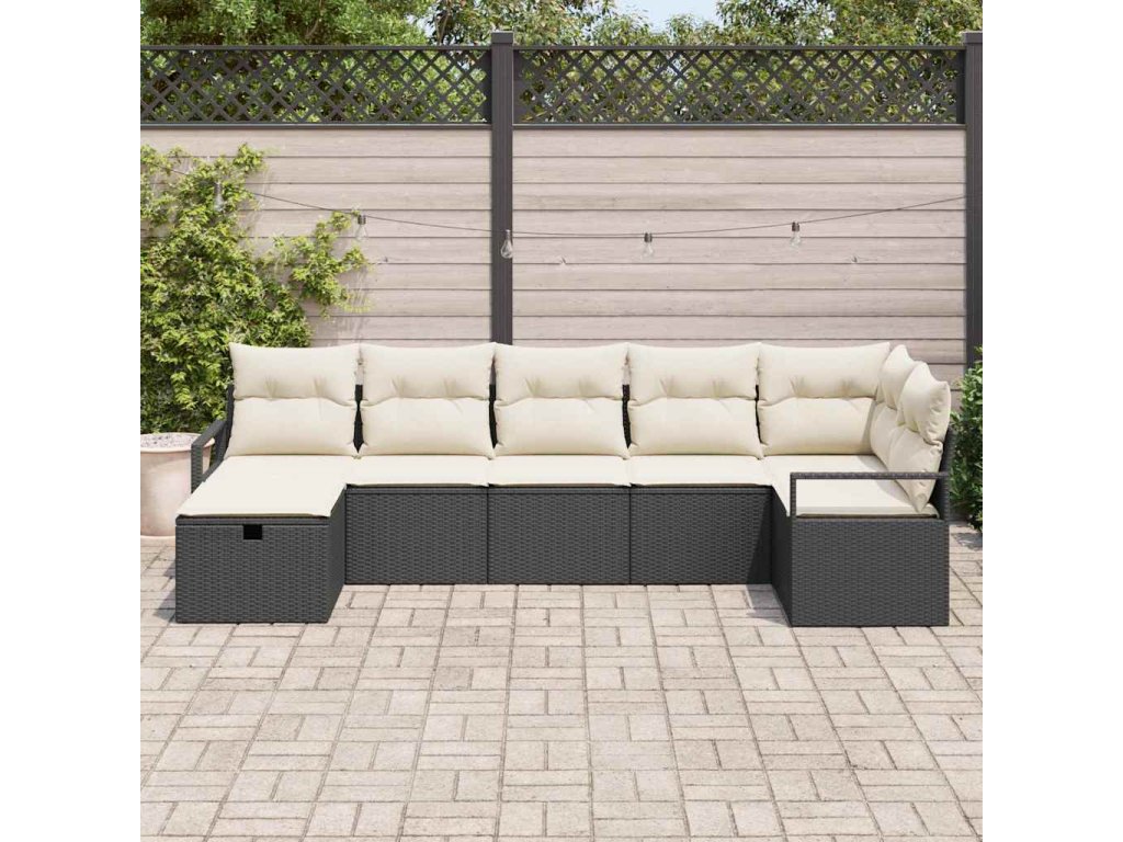 Sada zahradních pohovek s polštářem 7 pcs Černá Poly ratan 3360528