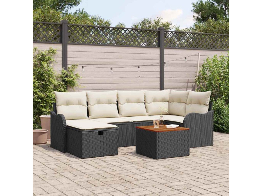 Sada zahradních pohovek s polštářem 7 pcs Černá Poly ratan 3360813