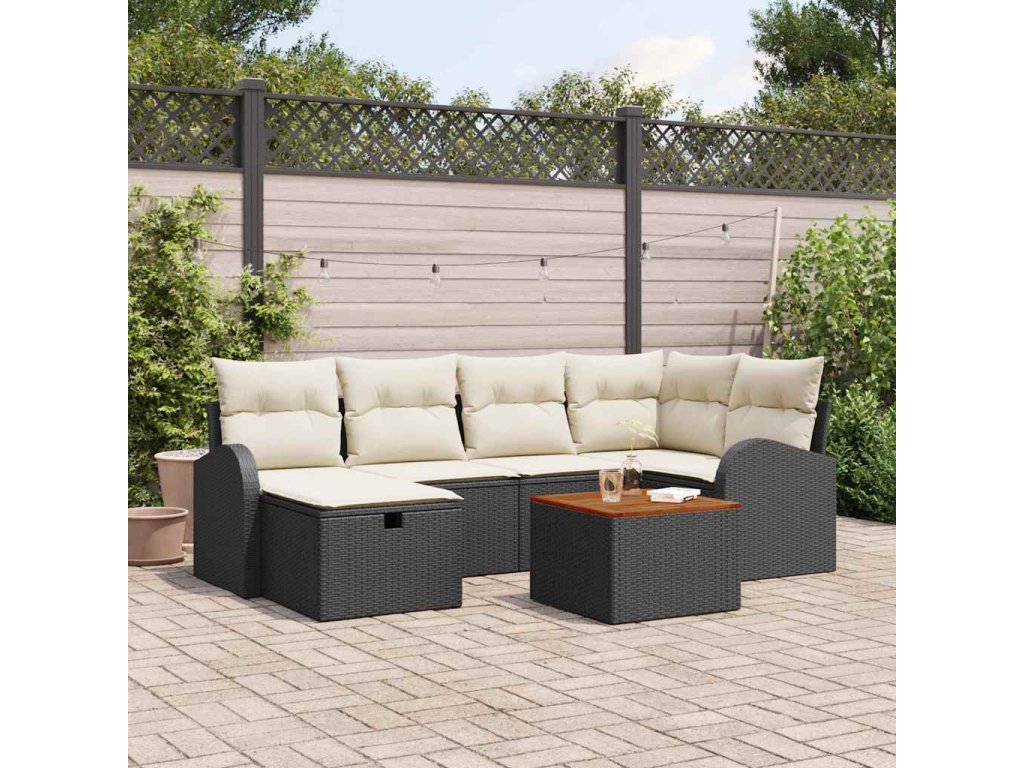 Sada zahradních pohovek s polštářem 7 pcs Černá Poly ratan 3360841