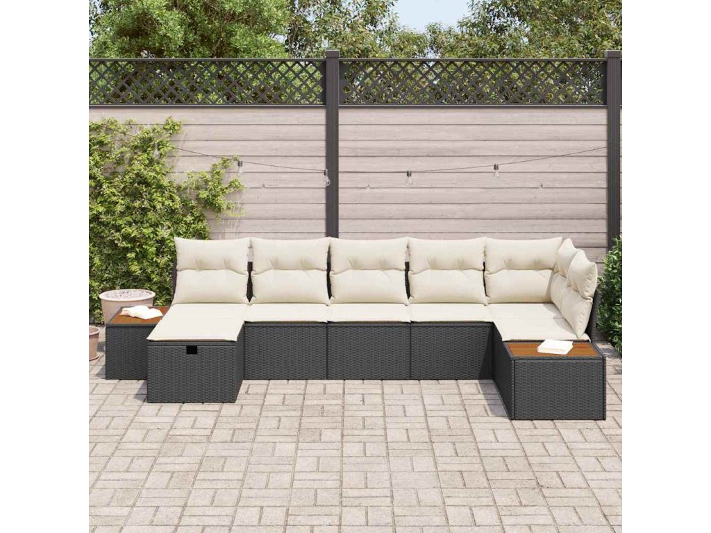 Sada zahradních pohovek s polštářem 7 pcs Černá Poly ratan 3360971