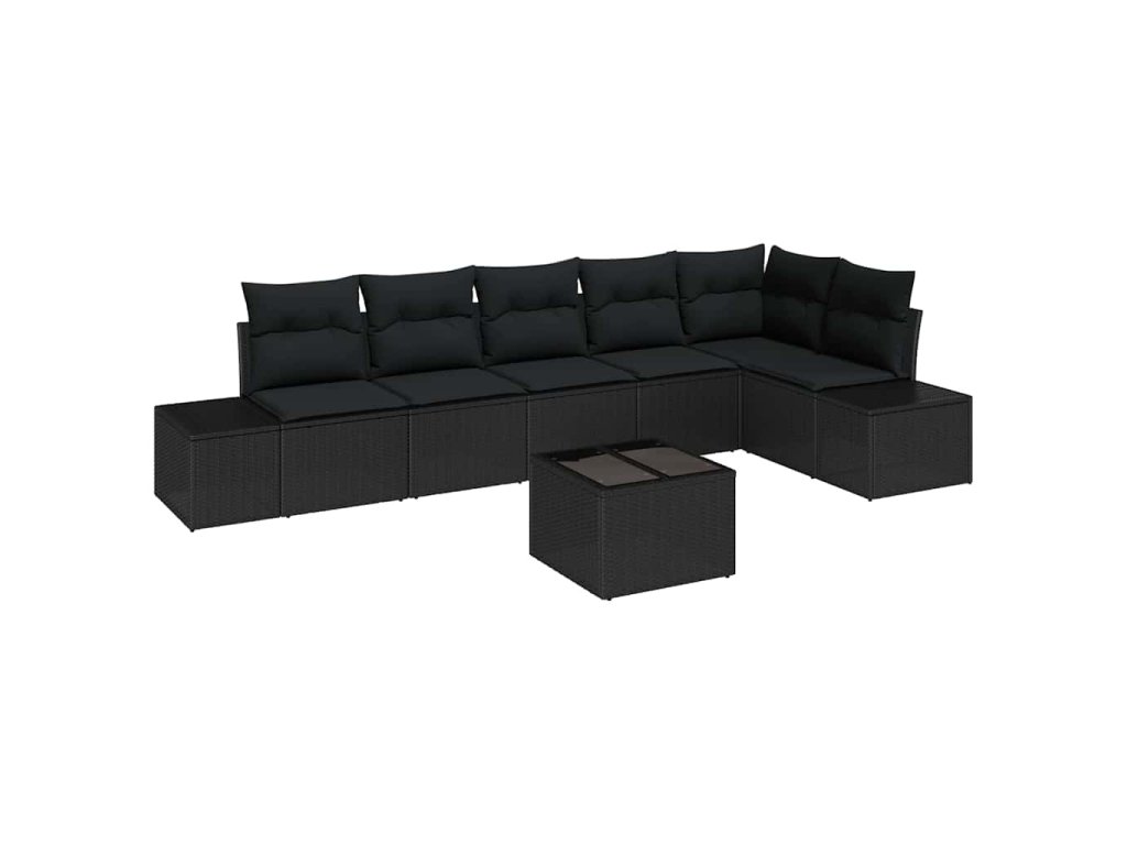 Sada zahradních pohovek s polštářem 7 pcs Černá polyratan 3347093