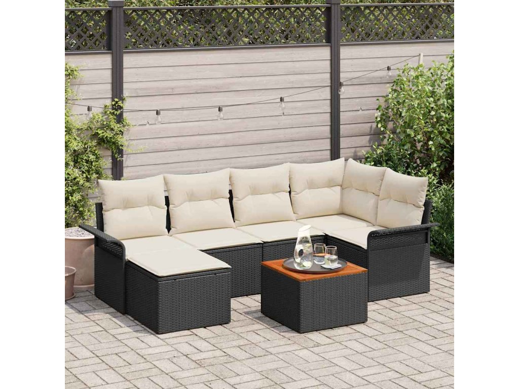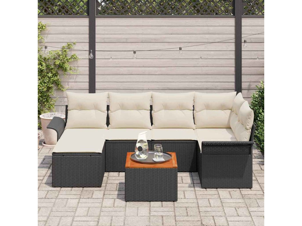 Sada zahradních pohovek s polštářem 7 pcs Černá polyratan 3347348