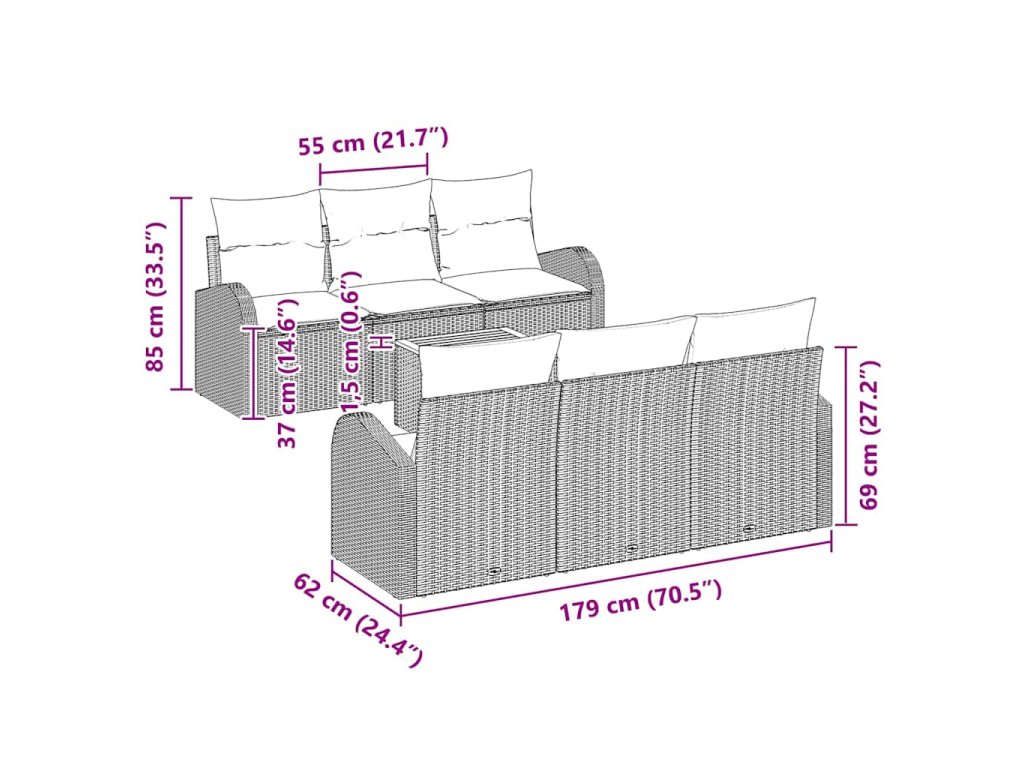 Sada zahradních pohovek s polštářem 7 pcs Černá polyratan 3347523