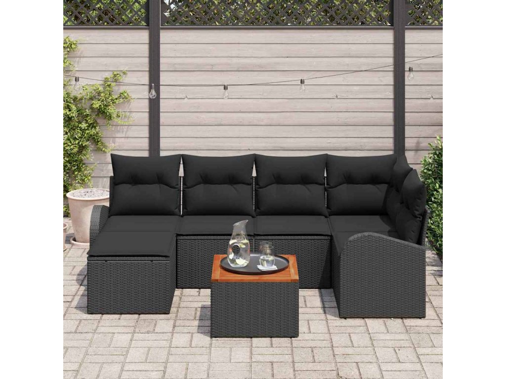 Sada zahradních pohovek s polštářem 7 pcs Černá polyratan 3347604