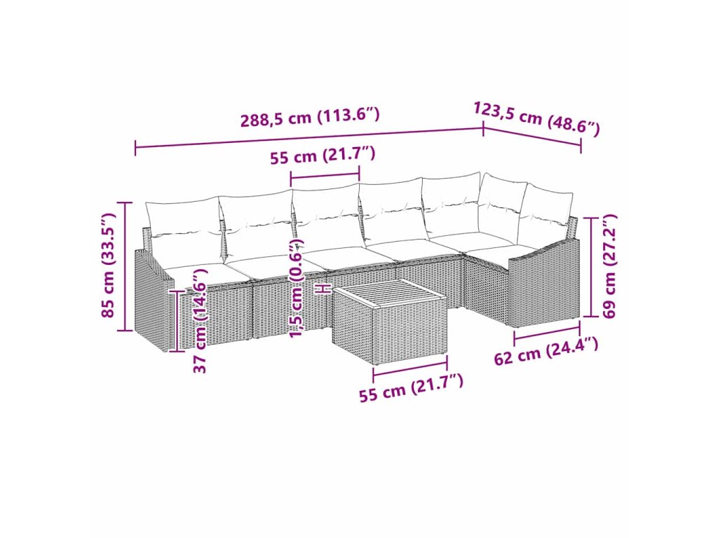 Sada zahradních pohovek s polštářem 7 pcs Černá polyratan 3347838