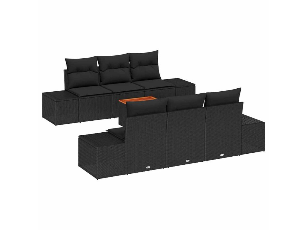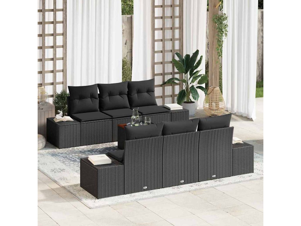 Sada zahradních pohovek s polštářem 7 pcs Černá polyratan 3347905