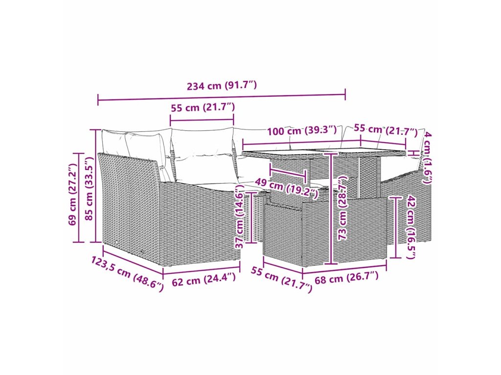 Tento modulární zahradní sofa set je skvělým doplňkem pro každý venkovní prostor, přináší moderní vzhled díky čistým liniím a šikovným funkcím. Je ideální pro zahrady a terasy, odlišuje se od běžného zahradního nábytku. Elegantní design a praktické detaily ho dělají skvělou volbou pro ty, kdo chtějí stylové a funkční sezení venku. Díky modulárnímu provedení ho můžete uspořádat podle potřeby na různé příležitosti.