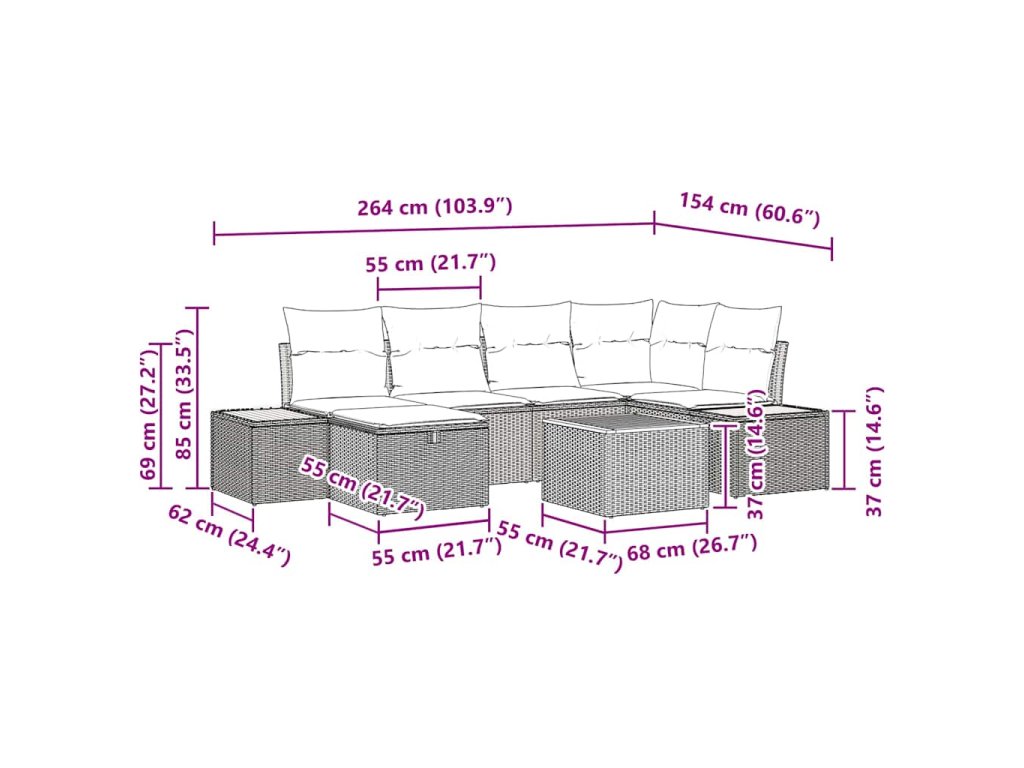 - Součásti Souprava obsahuje centrální sedačku, rohovou sedačku, boční pohovku, podnožku a zahradní stolek. Každý kus je navržený tak, aby byl pohodlný a funkční a dohromady tvoří prostor pro relaxaci, který vítá rodinu i přátele.