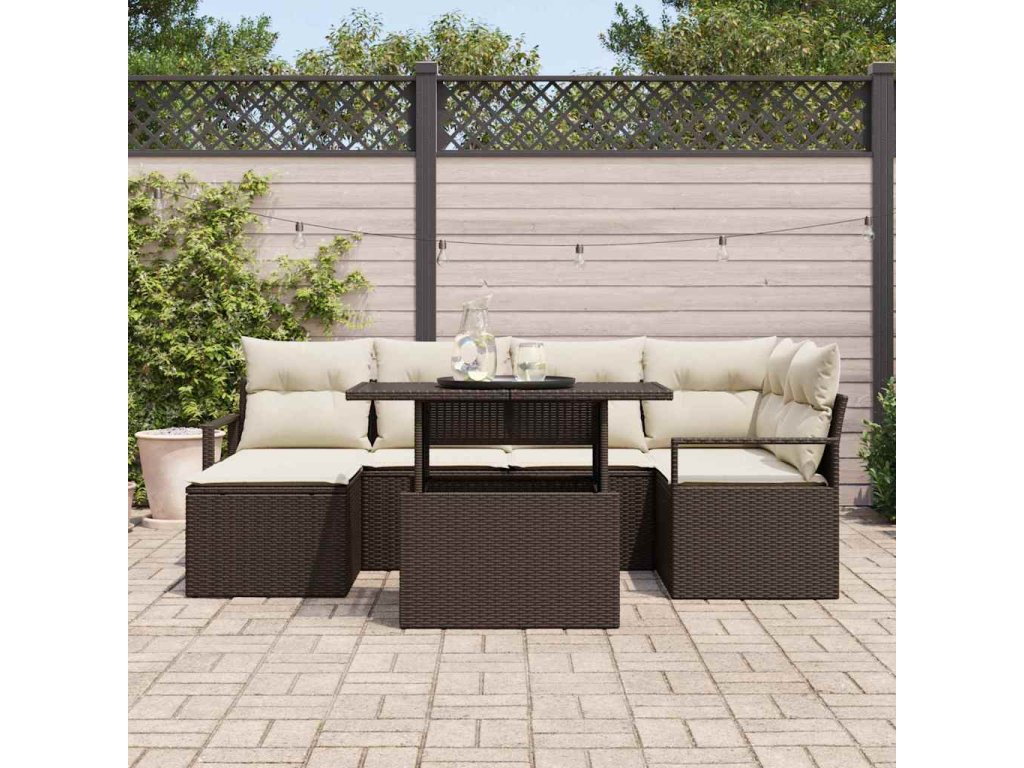 Sada zahradních pohovek s polštářem 7 pcs Hnědá a krémová 3348854