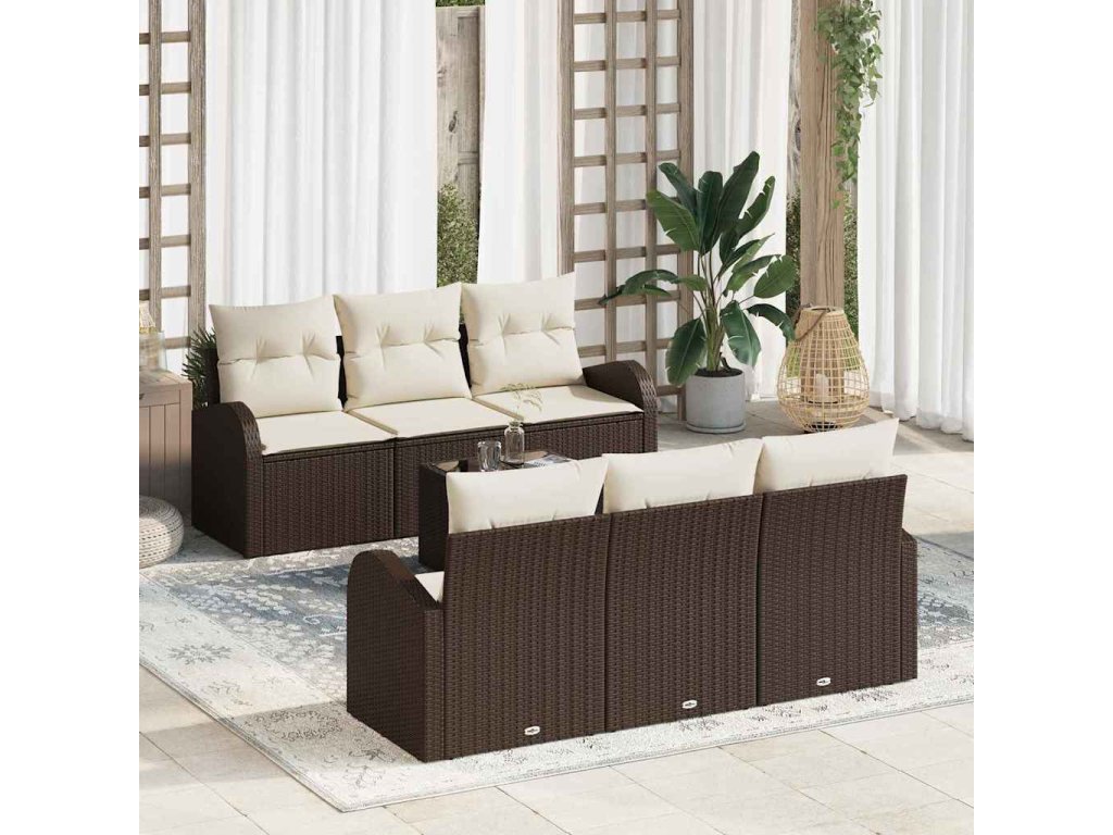 Sada zahradních pohovek s polštářem 7 pcs Hnědá a krémová 3354597