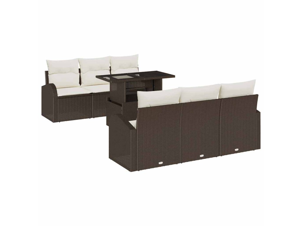 Sada zahradních pohovek s polštářem 7 pcs Hnědá Poly ratan 3348564