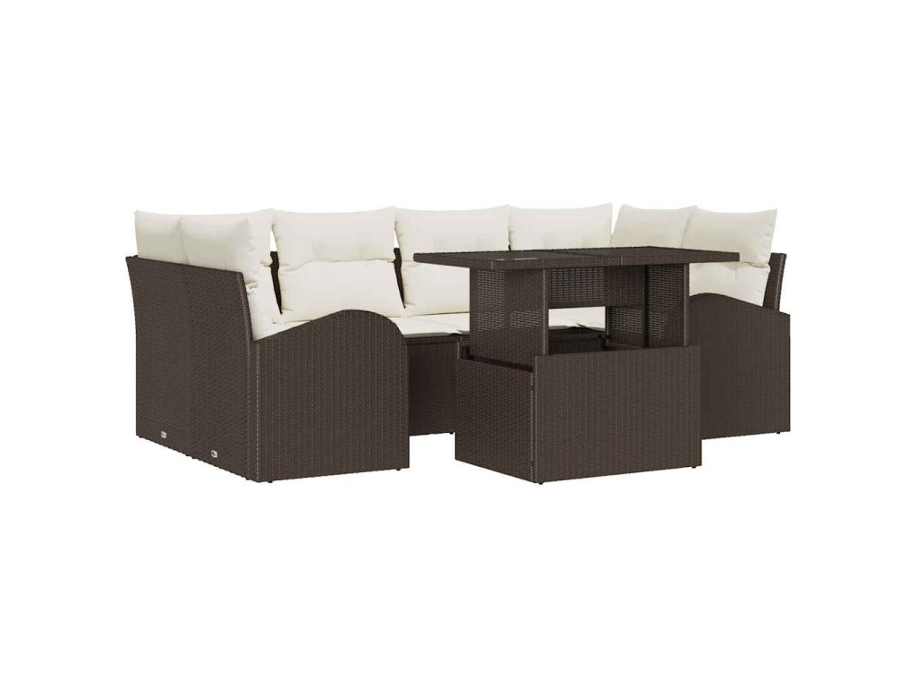 Sada zahradních pohovek s polštářem 7 pcs Hnědá Poly ratan 3348574